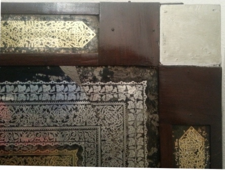 Marco de espejo labrado con dorados y plateados con labor de ataurique. Un marco siempre dignifica y hasta sacraliza una obra, pero en este caso es tal su ornamentación que es el propio marco la obra de arte. Es un excepcional trabajo de ataurique, tipo de ornamentación de elementos vegetales con origen en las decoraciones islámicas, también conocido como arabescos. Consiste en un espejo esgrafiado y lacado en negro.