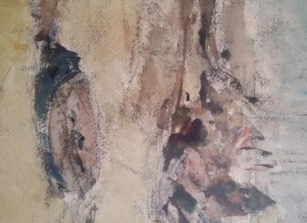 Esta acuarela sufrió por accidente unas salpicaduras que invadían la totalidad de la obra. Se realizó limpieza mecánica con bisturí y reintegración cromática con acuarelas.
