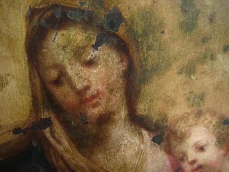 Esta obra, realizada sobre un soporte de cobre, había perdido su planitud y presentaba oxidaciones en forma de sales de color verde, que habían migrado a través de las capas superiores, manchando el color y provocando reacciones químicas con algunos pigmentos. Se realizó una limpieza de las sales metálicas y una reintegración volumétrica y cromática de los estratos perdidos.