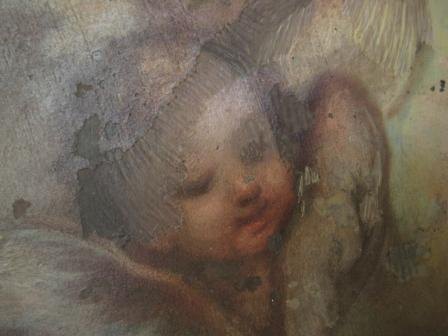 Esta obra, realizada sobre un soporte de cobre, había perdido su planitud y presentaba oxidaciones en forma de sales de color verde, que habían migrado a través de las capas superiores, manchando el color y provocando reacciones químicas con algunos pigmentos. Se realizó una limpieza de las sales metálicas y una reintegración volumétrica y cromática de los estratos perdidos.