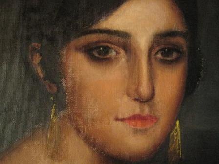Lo asombroso de esta restauración fue la sorpresa de la verdadera pintura de Julio Romero debajo de lo que parecía una burda copia. Según se iban eliminando los repintes, la mujer iba perdiendo una piel tosca y verdina para recuperar la tersura y tonalidad propia de una joven andaluza. Incluso los pendientes eran falsos…