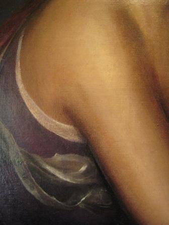 Lo asombroso de esta restauración fue la sorpresa de la verdadera pintura de Julio Romero debajo de lo que parecía una burda copia. Según se iban eliminando los repintes, la mujer iba perdiendo una piel tosca y verdina para recuperar la tersura y tonalidad propia de una joven andaluza. Incluso los pendientes eran falsos…