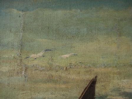 Los colores del atardecer manchego se recuperaron tras la limpieza del lienzo, amarilleado a causa de la oxidación de los barnices. En las diversas catas de limpieza se percibe como va desapareciendo el tono sombrío que cubría la obra antes de la restauración.