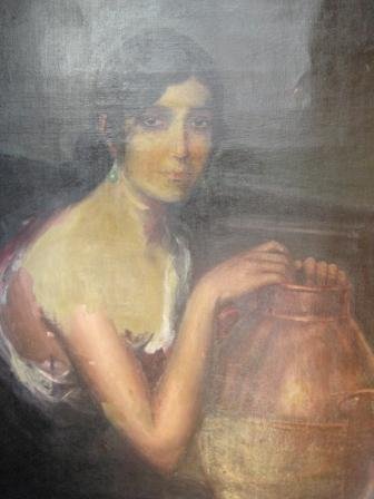 Lo asombroso de esta restauración fue la sorpresa de la verdadera pintura de Julio Romero debajo de lo que parecía una burda copia. Según se iban eliminando los repintes, la mujer iba perdiendo una piel tosca y verdina para recuperar la tersura y tonalidad propia de una joven andaluza. Incluso los pendientes eran falsos…