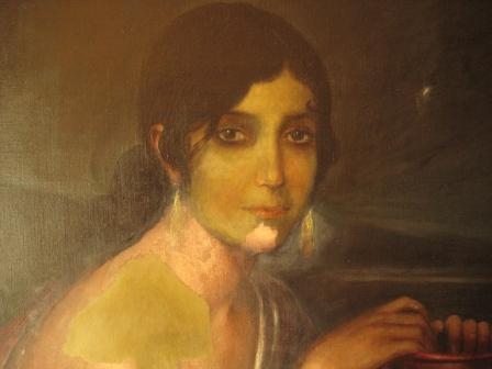 Lo asombroso de esta restauración fue la sorpresa de la verdadera pintura de Julio Romero debajo de lo que parecía una burda copia. Según se iban eliminando los repintes, la mujer iba perdiendo una piel tosca y verdina para recuperar la tersura y tonalidad propia de una joven andaluza. Incluso los pendientes eran falsos…