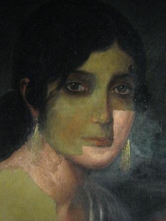 Lo asombroso de esta restauración fue la sorpresa de la verdadera pintura de Julio Romero debajo de lo que parecía una burda copia. Según se iban eliminando los repintes, la mujer iba perdiendo una piel tosca y verdina para recuperar la tersura y tonalidad propia de una joven andaluza. Incluso los pendientes eran falsos…