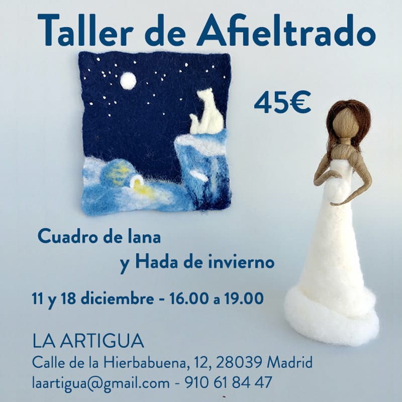 La técnica consiste en ir abatanando la lana hasta convertirla en fieltro y poder construir bellas figuras y composiciones con ella. La propia naturaleza de la lana hace que sea una maravillla trabajar con ella, más si es invierno, y más aún si al lado de una infusión calentita. Este curso es una oportunidad para adentrarse en una afición que ofrece muchas posibilidades expresivas y no requiere mucha infraestructura.