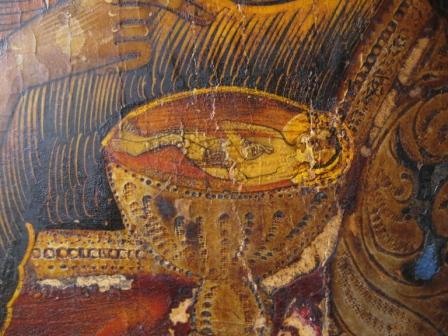 En la tabla aparecían faltas (lagunas) tanto en la capa de policromía como en la de preparación. Se realizó un sentado de color, limpieza, reintegración volumétrica y reintegración cromática.